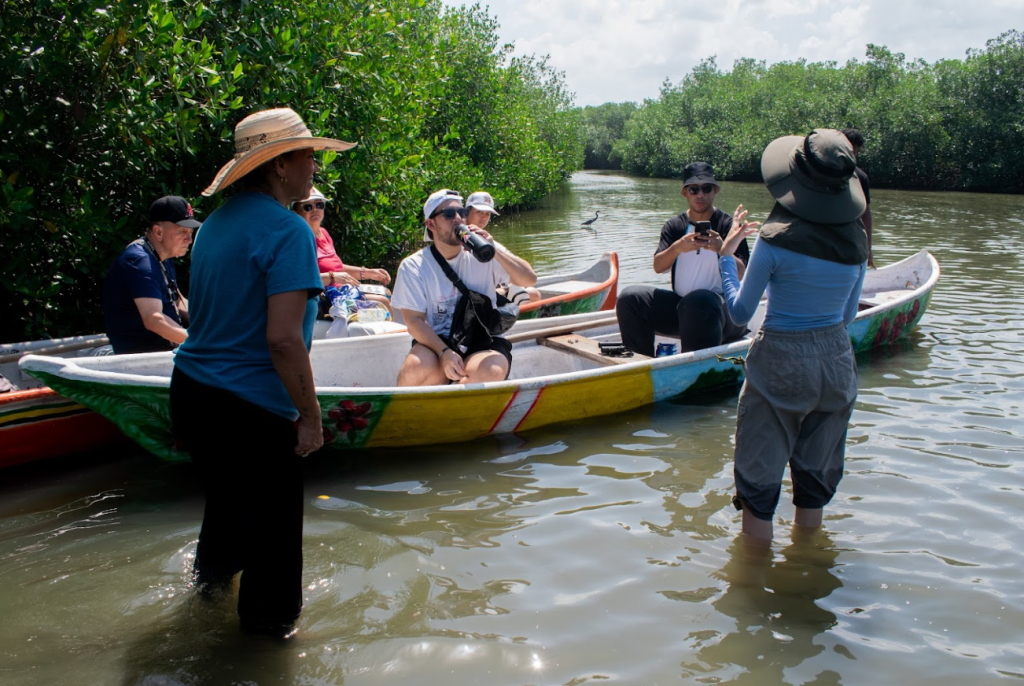 Bajo el sol cartagenero de las 9:00 AM, iniciamos con la guía experta de Angie Natally Tinoco, Bióloga y Magíster en Conservación. Navegar la Ciénaga de la Virgen en canoas tradicionales nos permitió entender este ecosistema estratégico, observando aves y especies que encuentran su refugio en este laberinto verde.