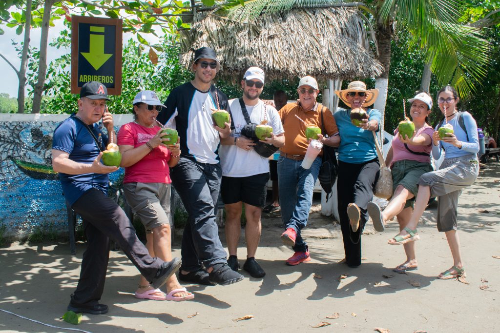 Finalizamos la jornada hidratándonos con agua de coco fría y, con los pies aún húmedos por la ciénaga, minteamos nuestro 3er POAP de Regenerando Cartagena.